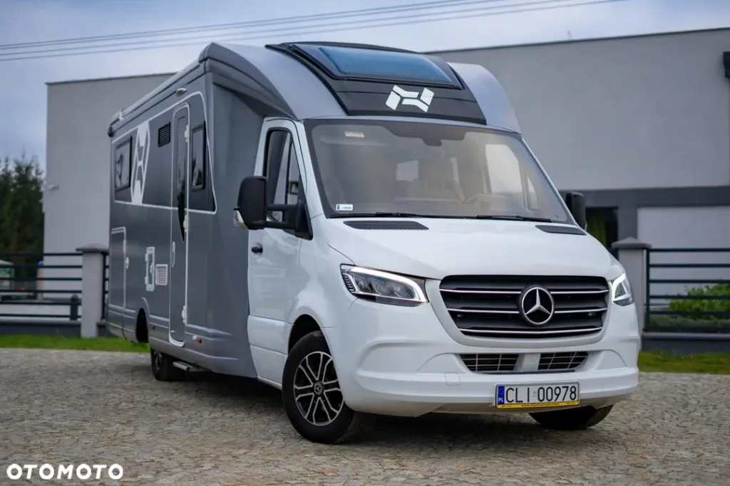 W wersji podstawowej znajdziesz m.in. pakiet zimowy, klimatyzację automatyczną THERMOTRONIC, oraz kamerę cofania zintegrowaną z systemem multimedialnym MBUX. Dodatkowo, kamper wyposażony jest w ogrzewanie Truma Combi 6 CP Plus, lodówkę absorpcyjną, a także elektrycznie opuszczane łóżko w salonie, zapewniając komfort i funkcjonalność na każdym etapie podróży.