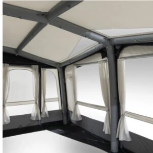 Dzięki szczytowi dachu Dual-Pitch™ i integralnemu baldachimowi Club AIR Pro jest natychmiast rozpoznawalny. Sprytna konfiguracja przedniego panelu oferuje dwoje przednich drzwi, lub po prostu rozsuń i usuń panele, aby otworzyć markizę w stylu werandy.