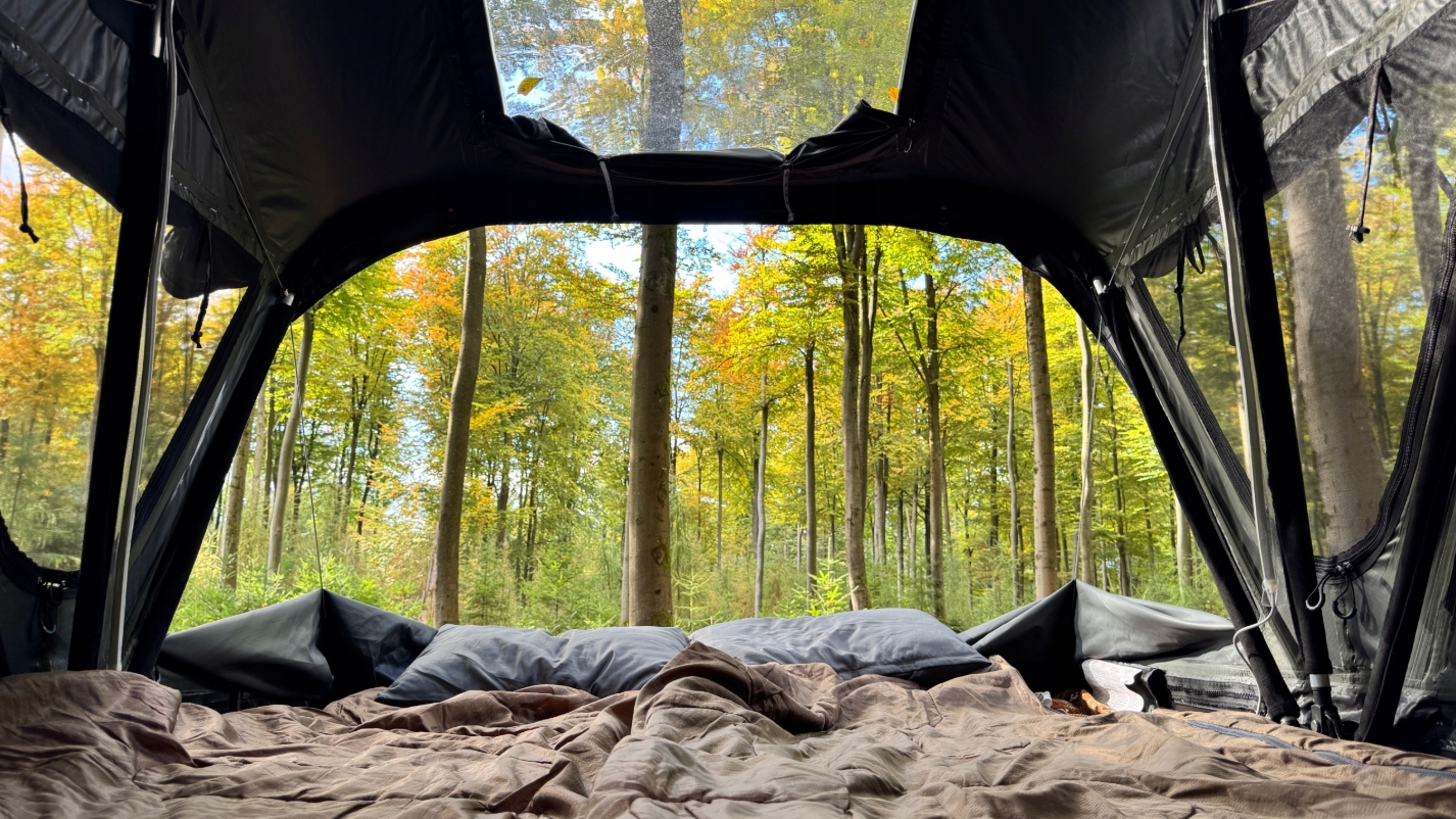 ▶ Pierwszy na świecie system FUSION: Szybkie rozkładanie namiotu z twardą skorupą połączone z podwójną powierzchnią do spania jak w składanym namiocie dachowym.