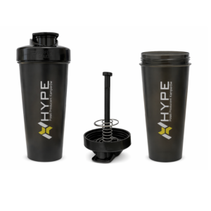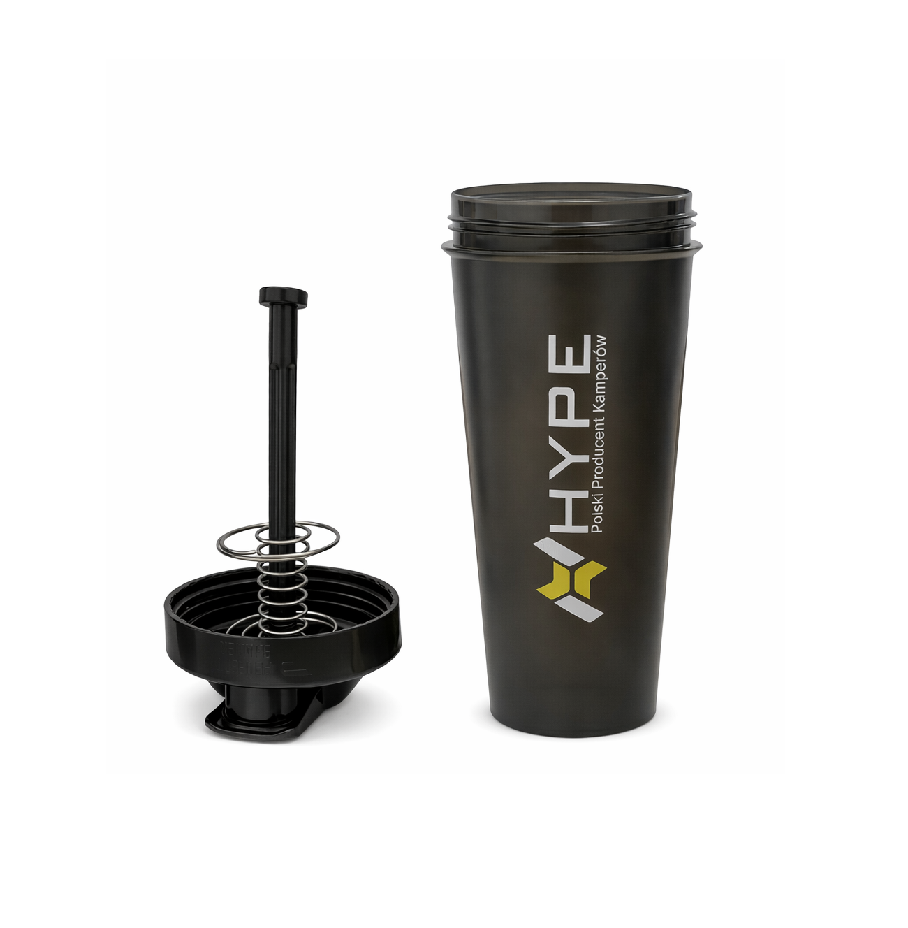 Czarny shaker HYPE to idealny wybór dla osób aktywnych, które cenią prostotę i wygodę w codziennym użytkowaniu.