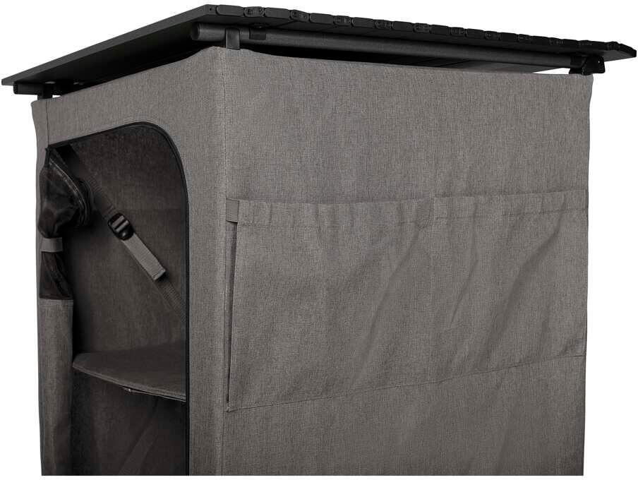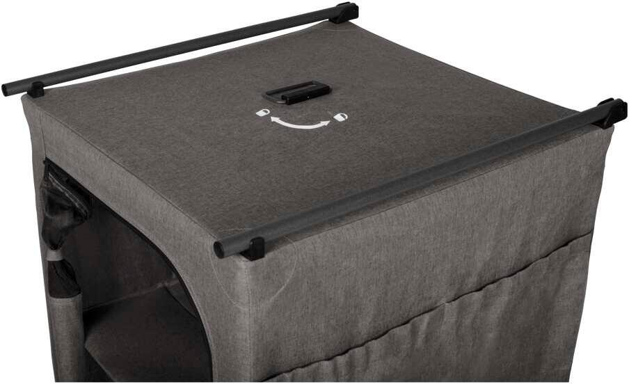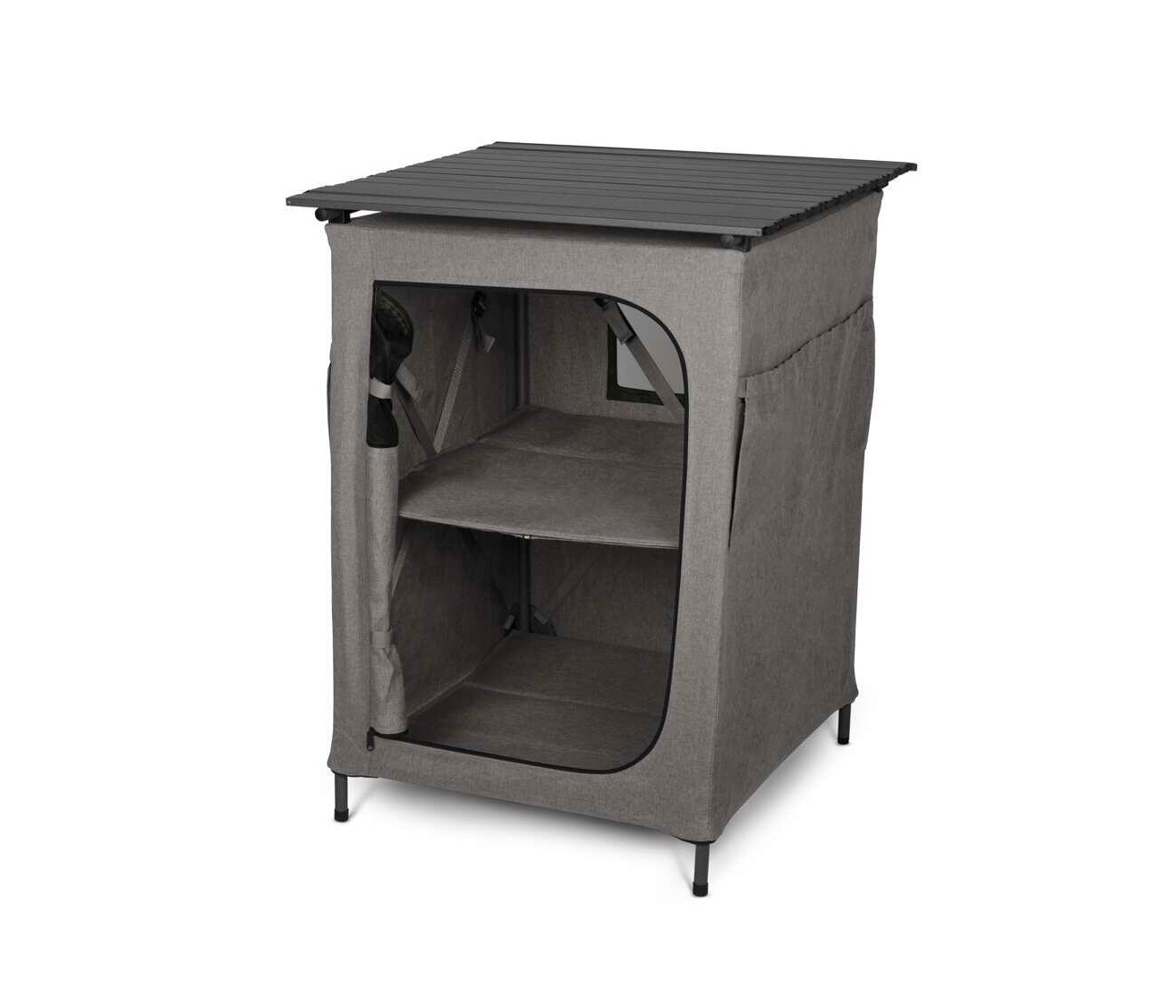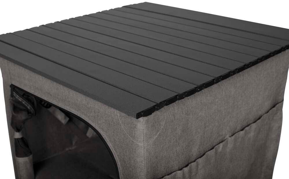 Doświadcz wolności i porządku! – Twoja osobista szafa, która pełni również funkcję praktycznego stolika bocznego. Ta szafka to genialny towarzysz dla wszystkich, którzy są w podróży, a mimo to nie chcą rezygnować z komfortu i organizacji. Dzięki sprytnej konstrukcji segreguje Twoje ubrania i można go bez trudu złożyć, gdy nadchodzi czas dalszej wędrówki. Idealny na kemping!